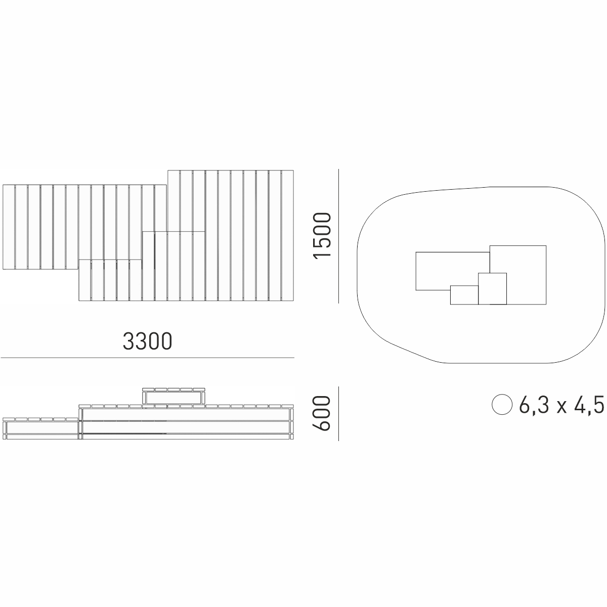 Габариты (М): 3,3 x 1,5 x 0,6