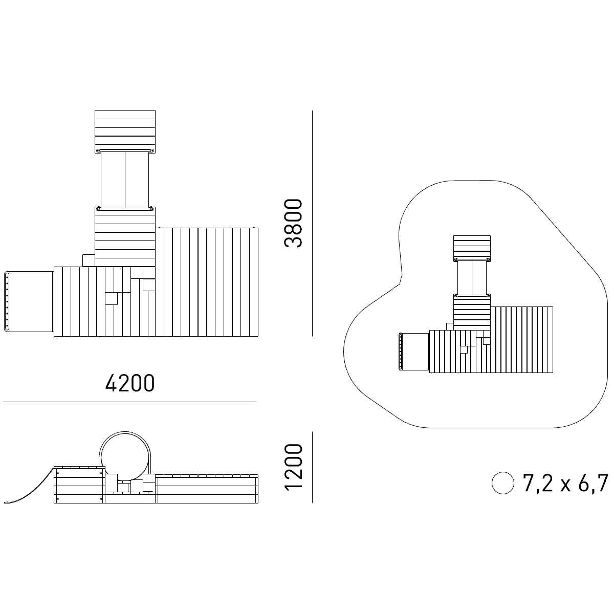 Габариты (М): 4,2 x 3,8 x 1,2