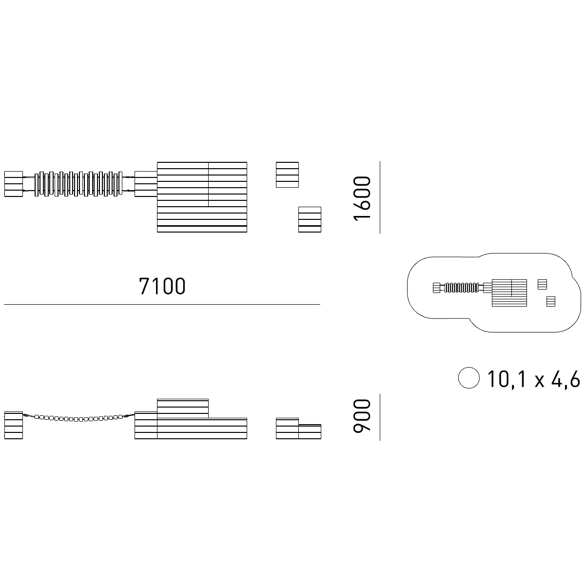 Габариты (М): 7,1 x 1,6 x 0,9