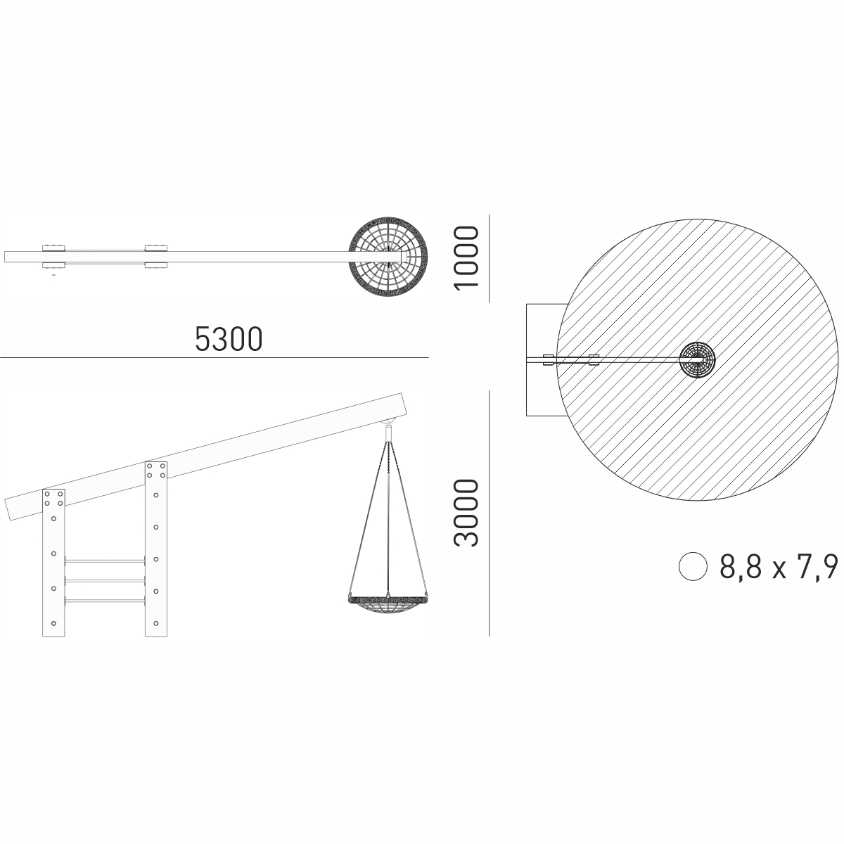 Габариты (М): 5,3 x 1 x 3