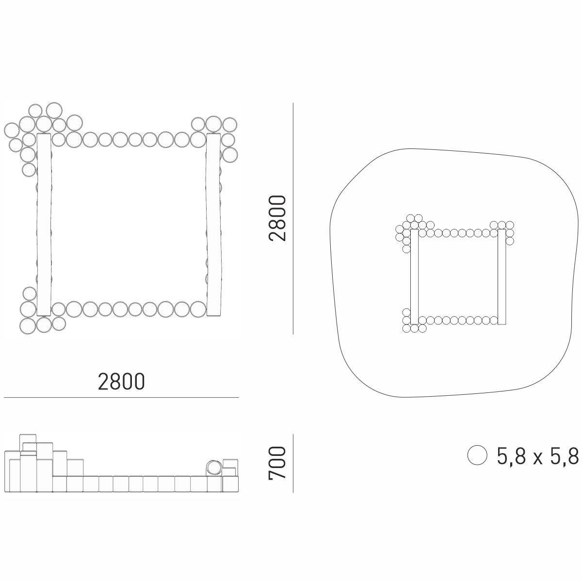 Габариты (М): 2,8 x 2,8 x 0,7