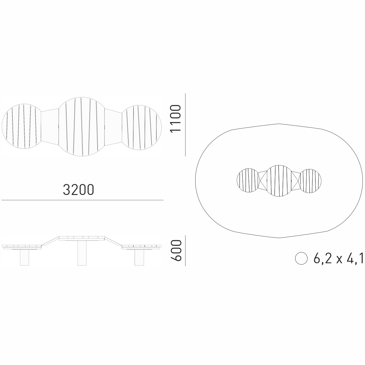 Габариты (М): 3,2 x 1,1 x 0,6
