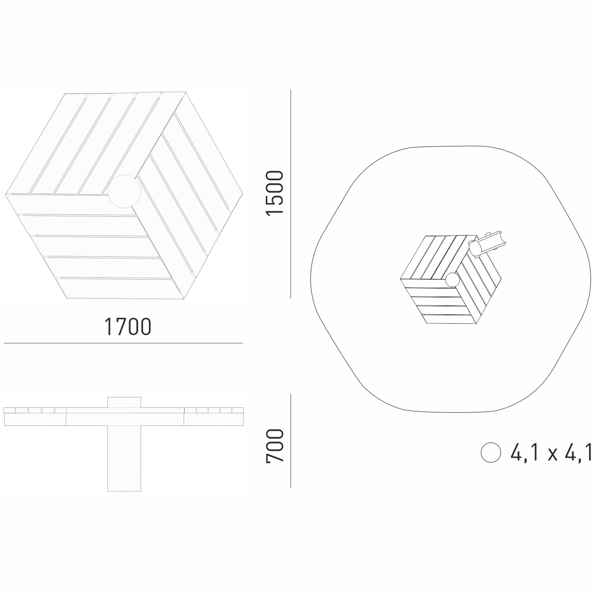 Габариты (М): 1,7 x 1,5 x 0,7