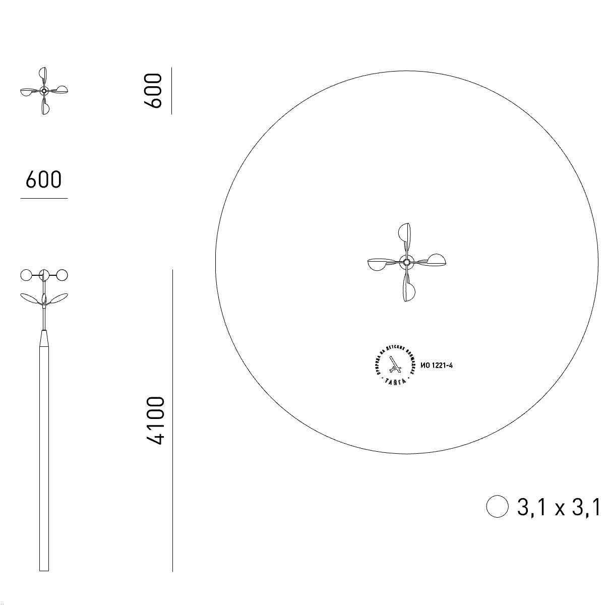 Зона приземления (М): 3,1 x 3,1