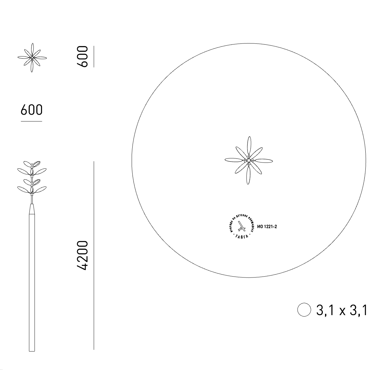 Зона приземления (М): 3,1 x 3,1