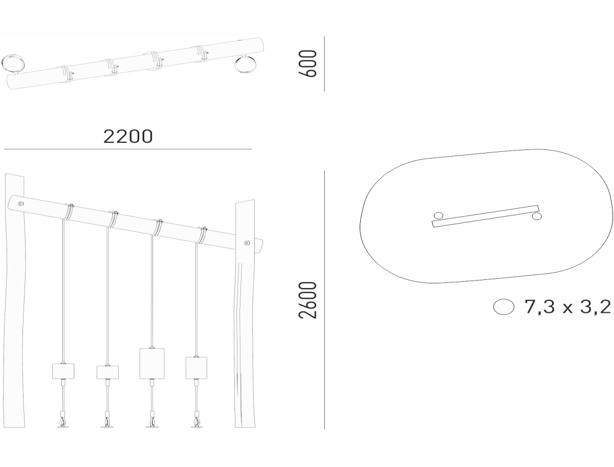 Габариты (М): 2,2 x 0,6 x 2,6