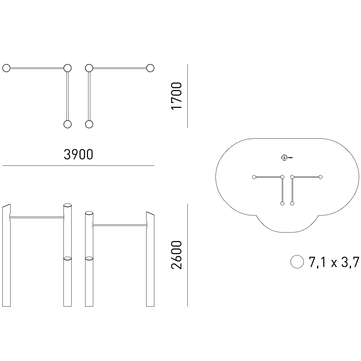 Габариты (М): 3,9 x 1,7 x 2,6
