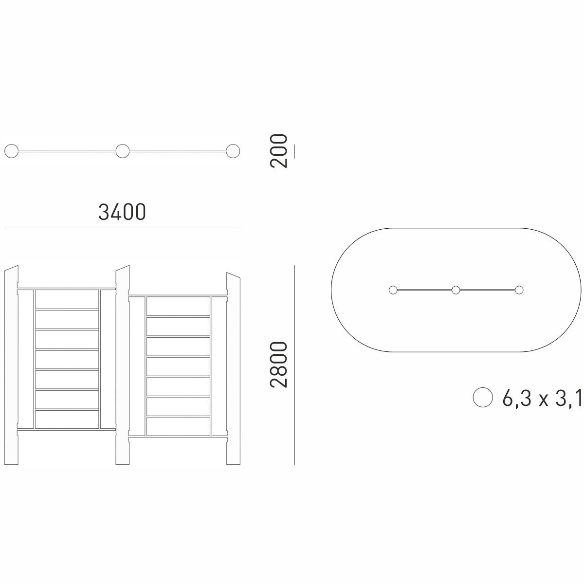 Габариты (М): 3,4 x 0,2 x 2,8