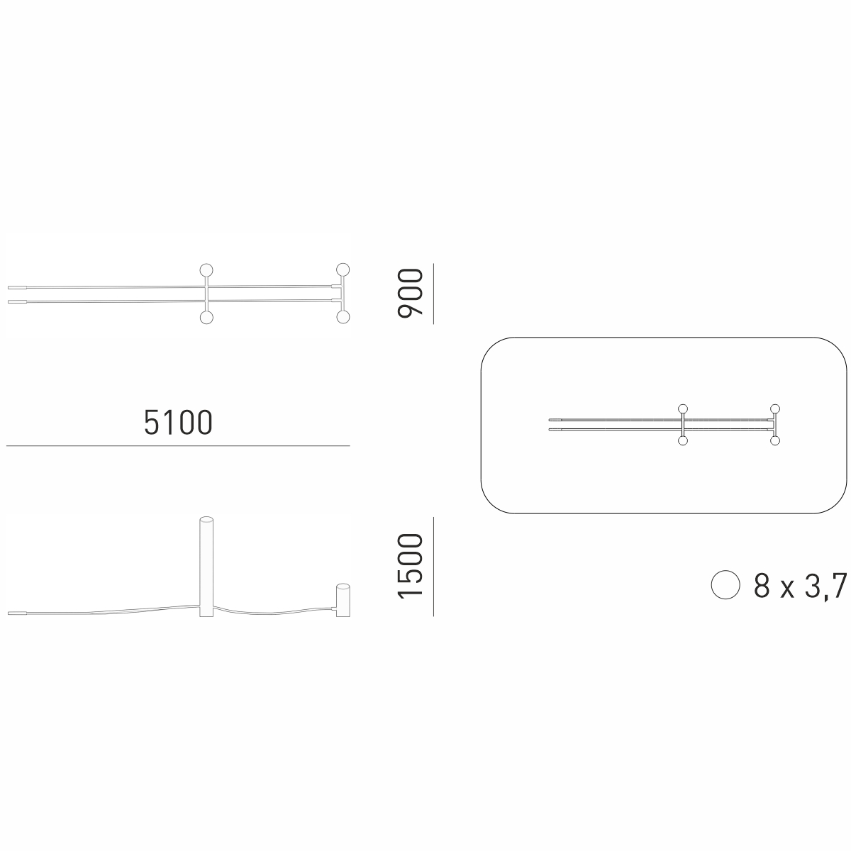 Габариты (М): 5,1 x 0,9 x 1,5