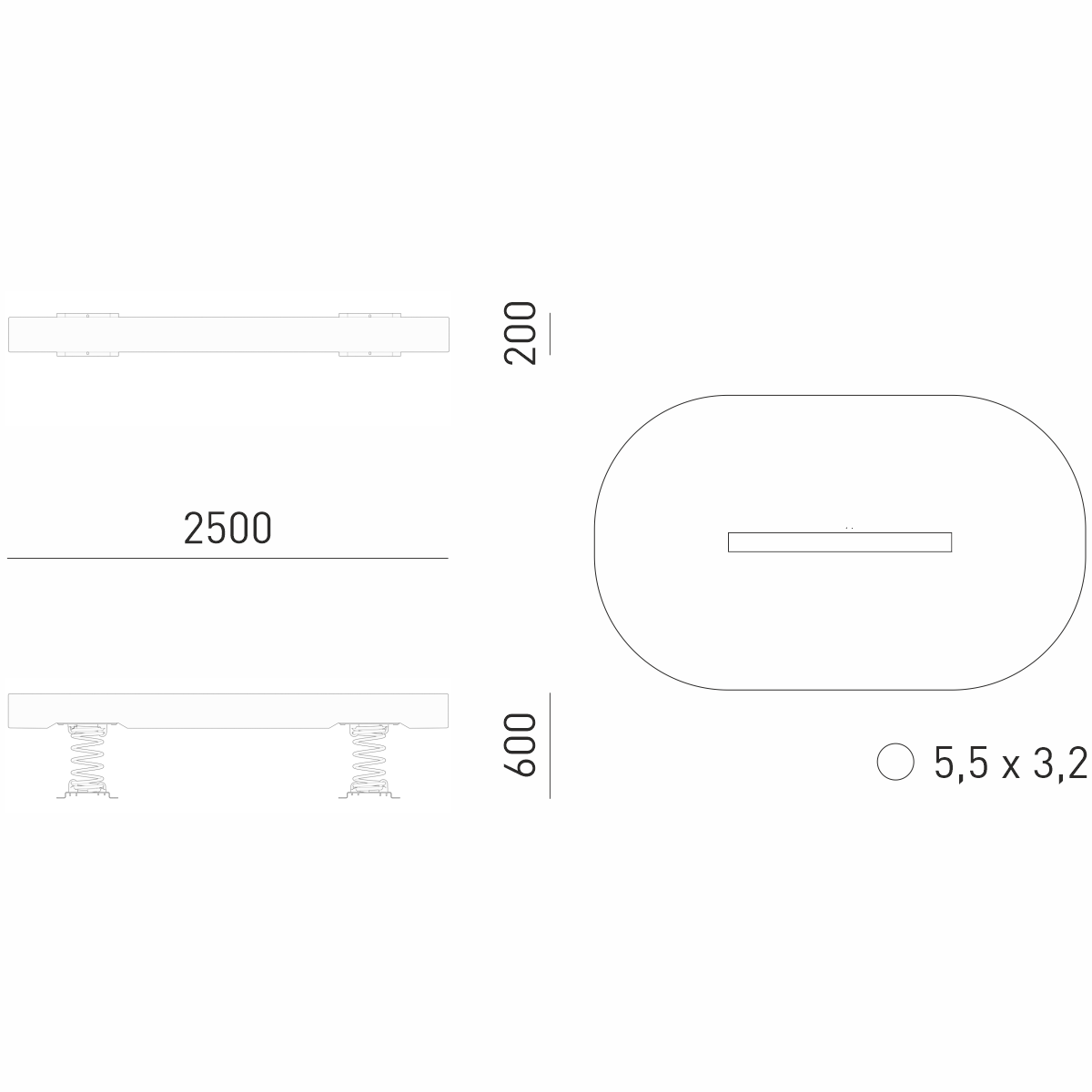 Габариты (М): 2,5 x 0,2 x 0,6