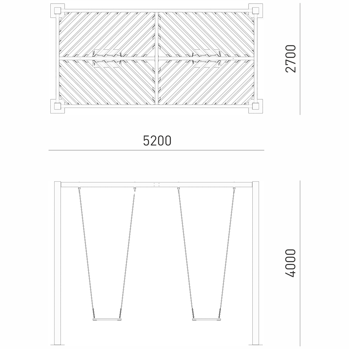 арт. Качели – пергола Руса на 2 подвеса для взрослых